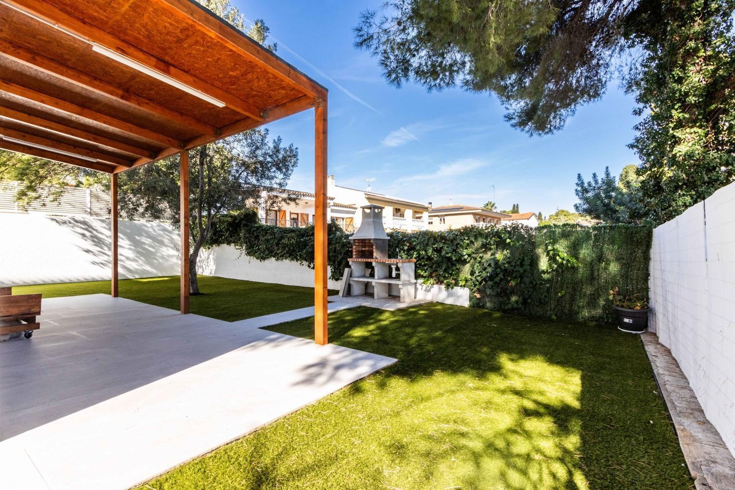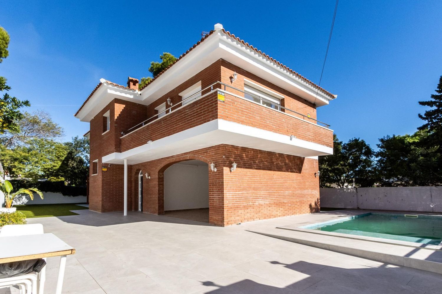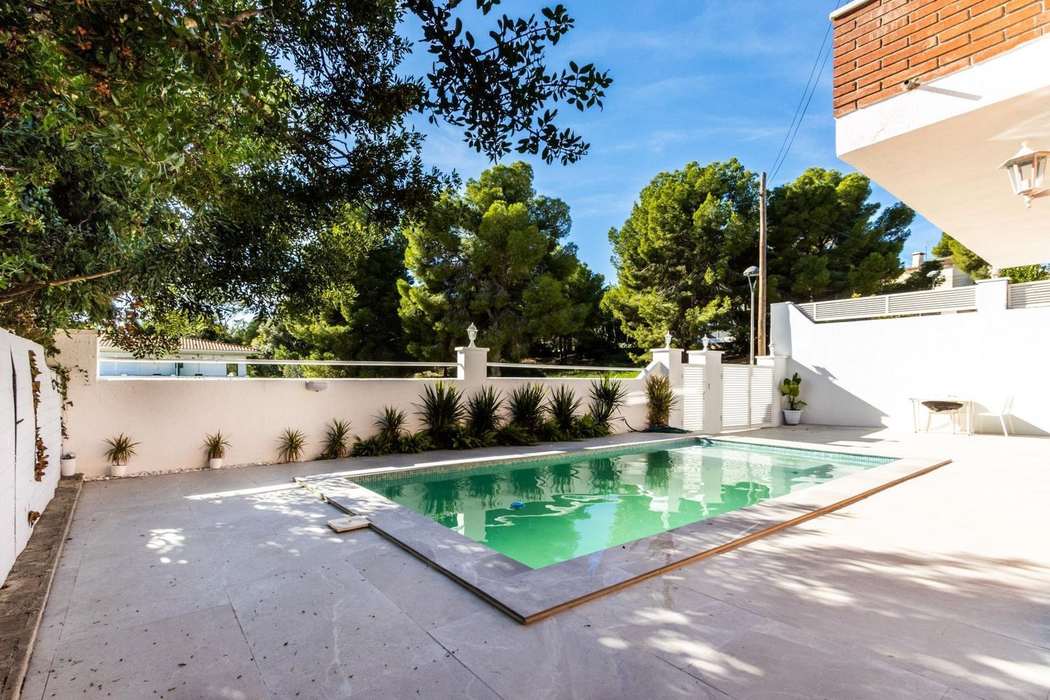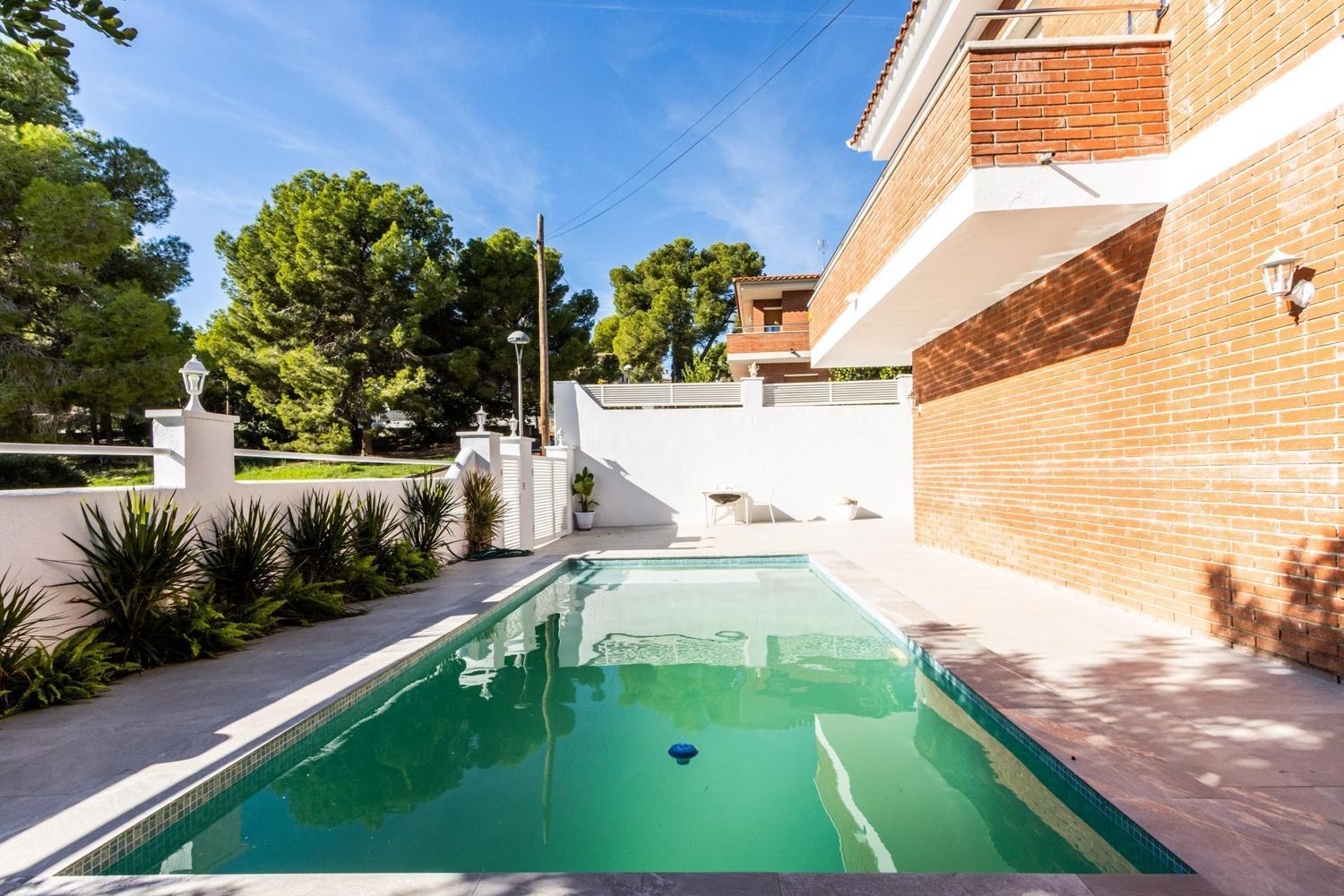 El exterior de la propiedad es un auténtico oasis de relajación 🌿. El jardín cuidado con porche cubierto y zona de barbacoa invita a disfrutar de encuentros al aire libre con familiares y amigos. La piscina de 3 × 7 m, orientada al sol ☀️, se convierte en el lugar perfecto para refrescarse, relajarse y crear recuerdos inolvidables durante todo el año. Además, el entorno tranquilo y seguro permite que los más pequeños jueguen y exploren con total libertad.