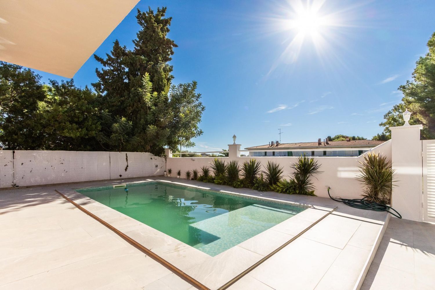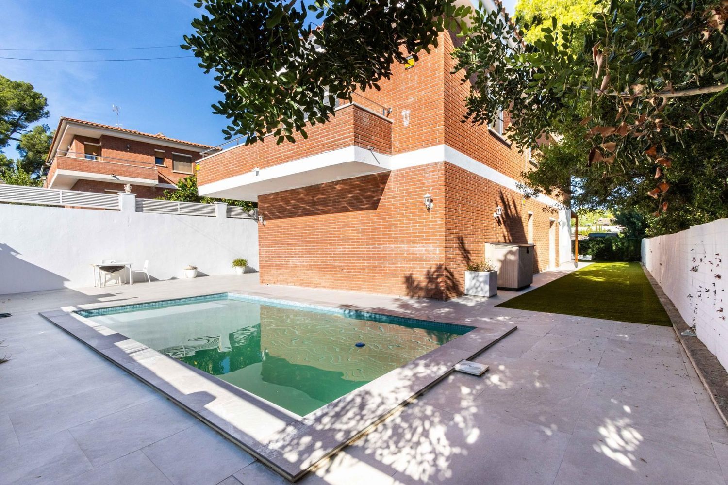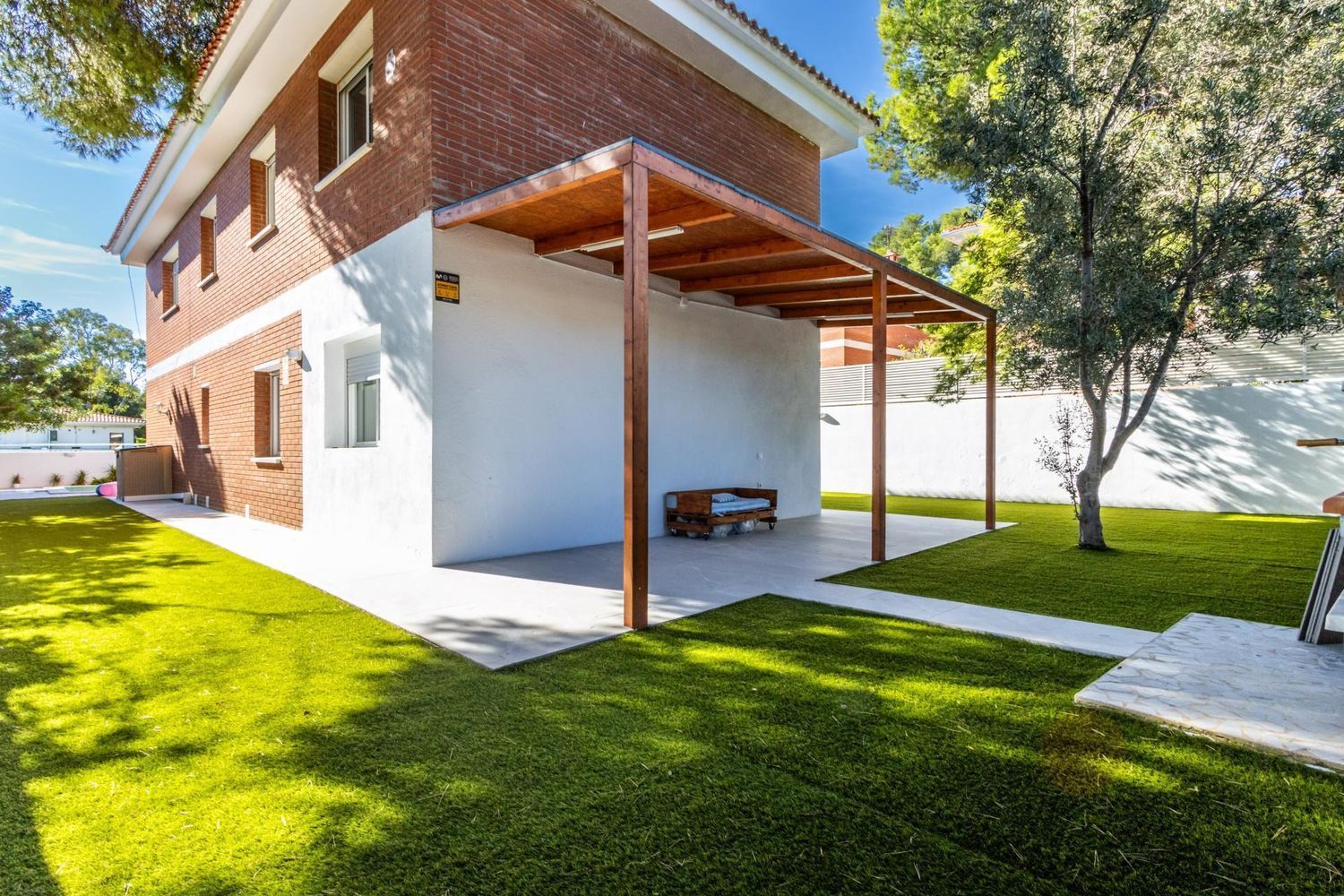 El exterior de la propiedad es un auténtico oasis de relajación 🌿. El jardín cuidado con porche cubierto y zona de barbacoa invita a disfrutar de encuentros al aire libre con familiares y amigos. La piscina de 3 × 7 m, orientada al sol ☀️, se convierte en el lugar perfecto para refrescarse, relajarse y crear recuerdos inolvidables durante todo el año. Además, el entorno tranquilo y seguro permite que los más pequeños jueguen y exploren con total libertad.