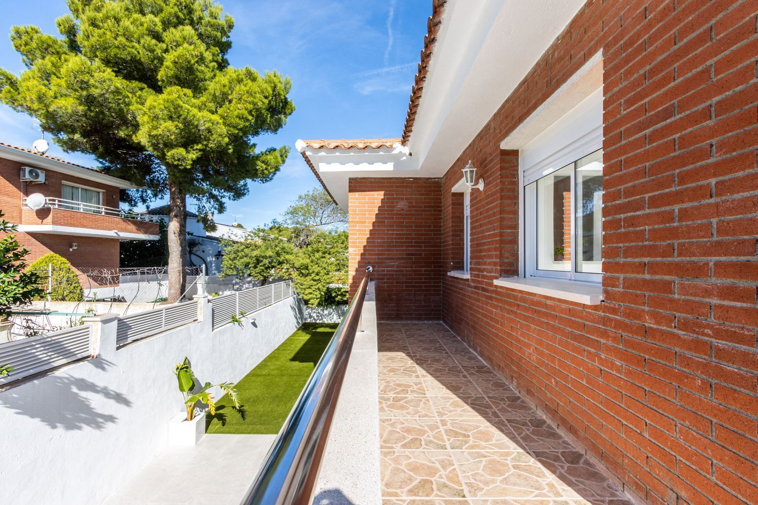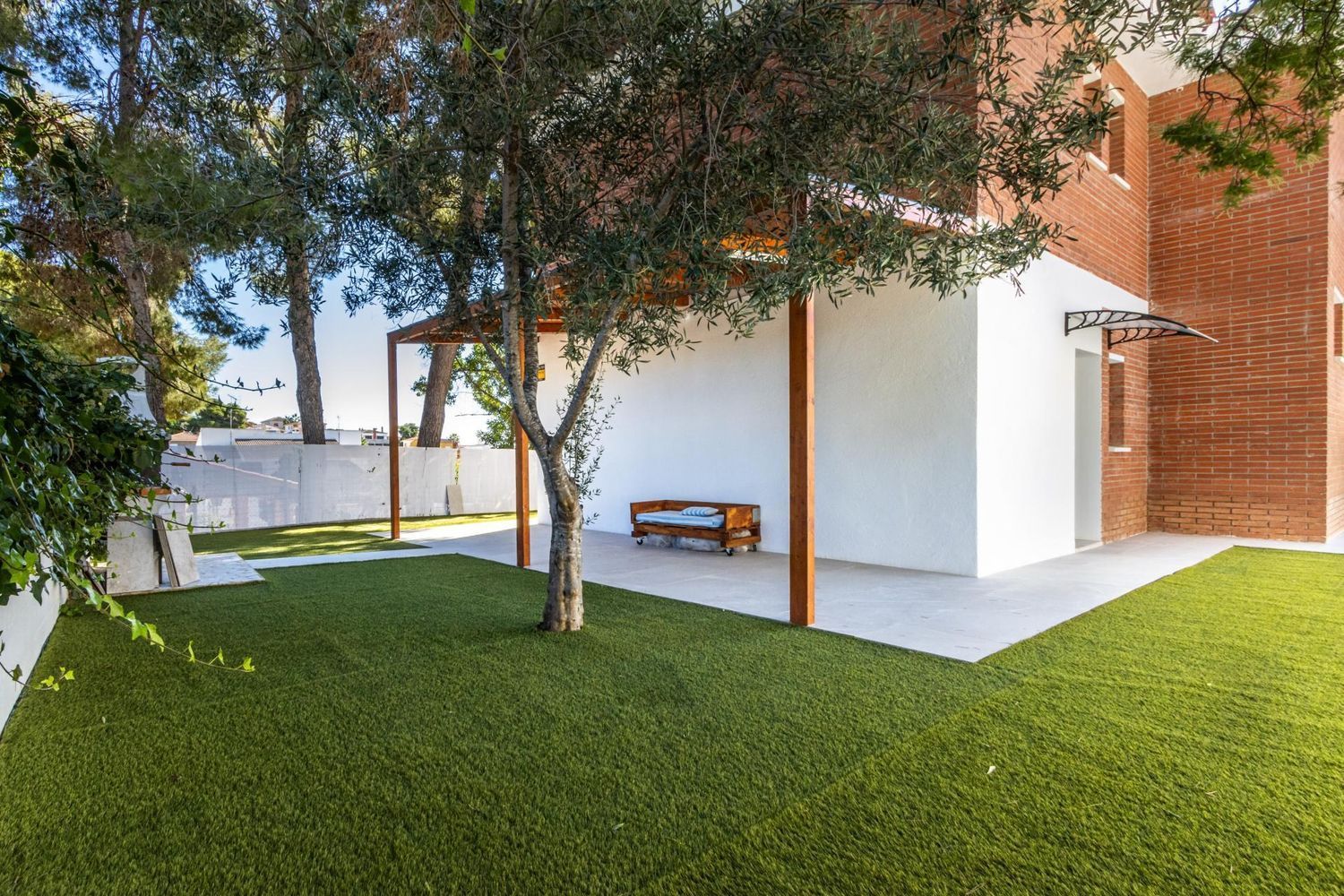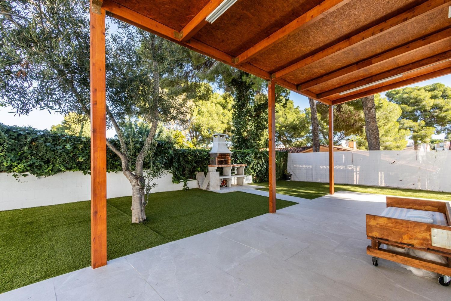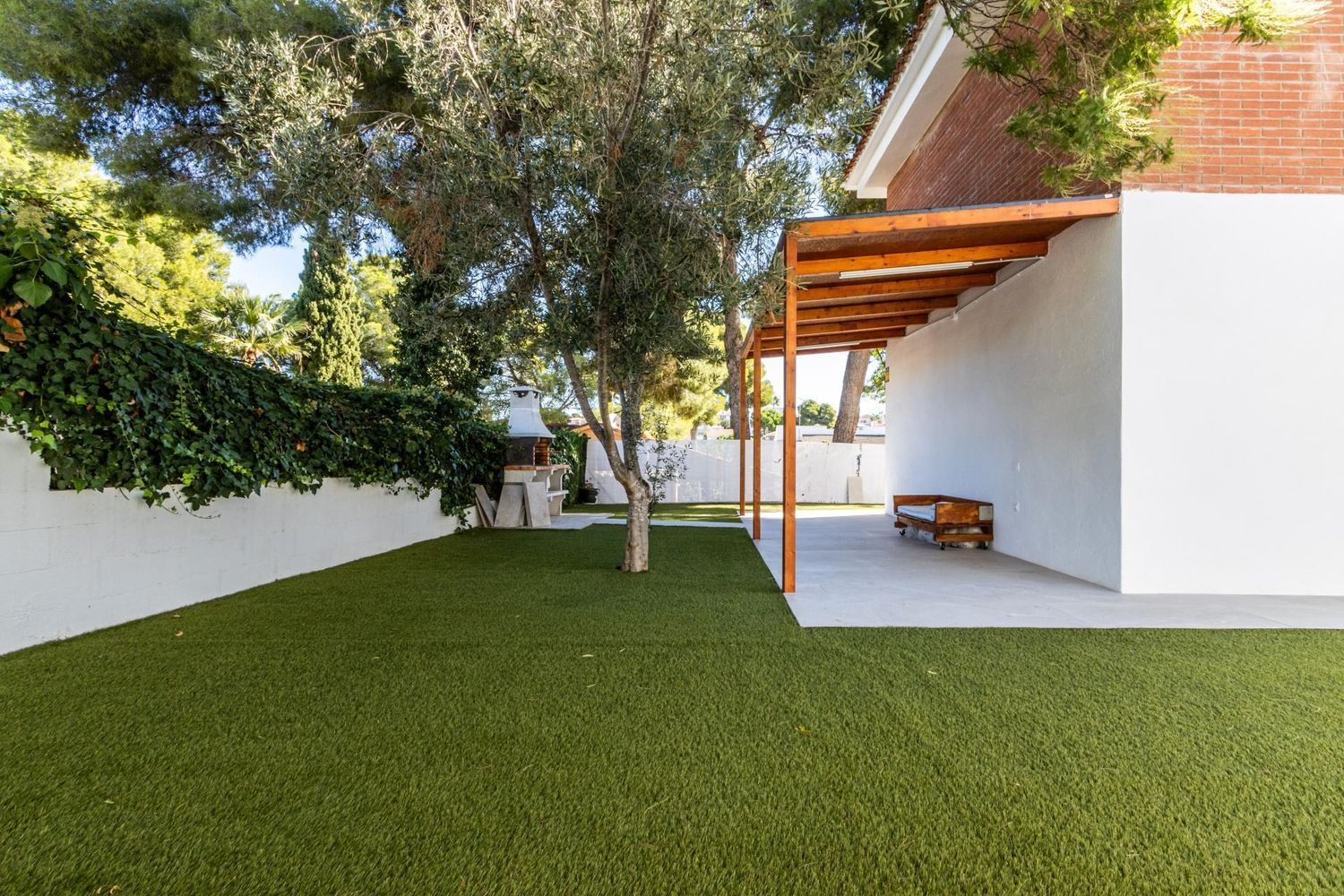 El exterior de la propiedad es un auténtico oasis de relajación 🌿. El jardín cuidado con porche cubierto y zona de barbacoa invita a disfrutar de encuentros al aire libre con familiares y amigos. La piscina de 3 × 7 m, orientada al sol ☀️, se convierte en el lugar perfecto para refrescarse, relajarse y crear recuerdos inolvidables durante todo el año. Además, el entorno tranquilo y seguro permite que los más pequeños jueguen y exploren con total libertad.