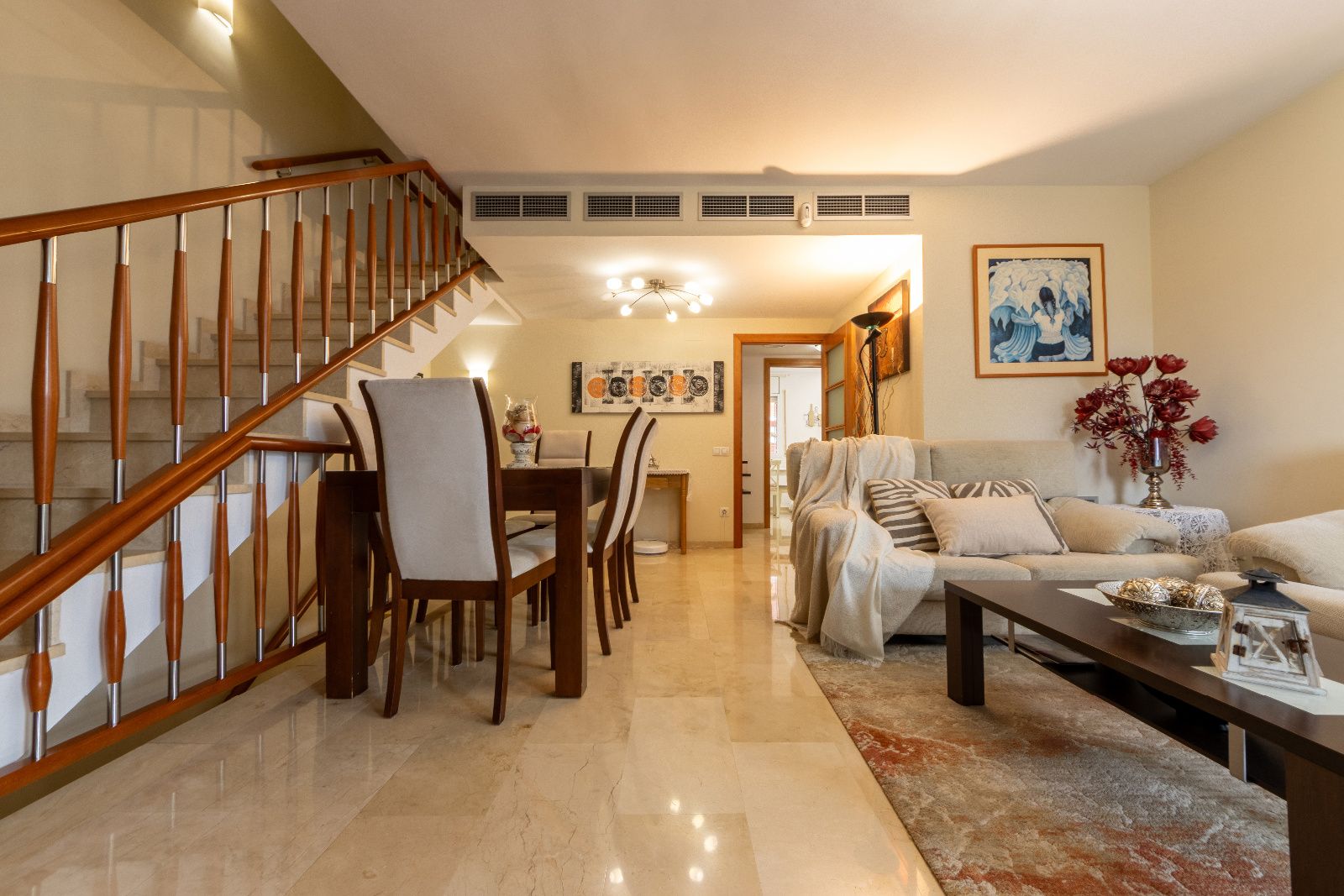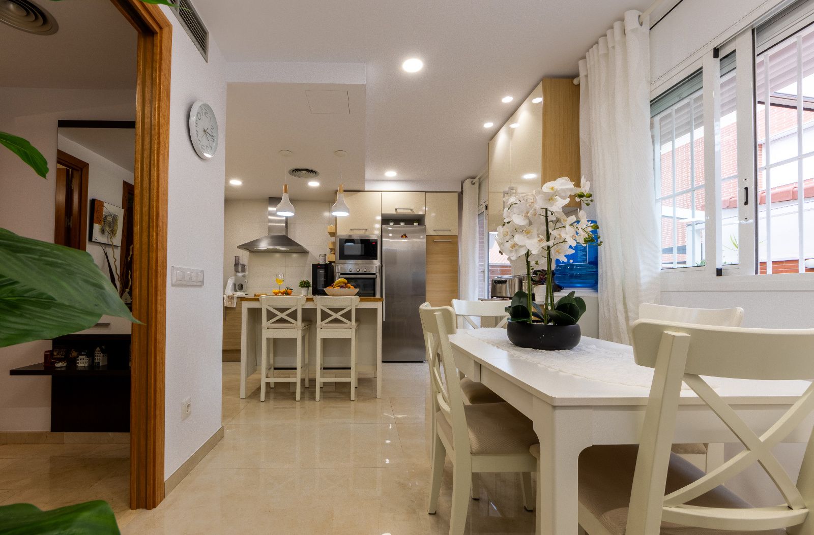 La planta baja acoge un salón comedor amplio y muy luminoso, con grandes ventanales que llenan de luz el espacio y crean un ambiente acogedor tanto para el día a día como para recibir invitados. La distribución favorece la fluidez y la convivencia familiar, con espacios pensados para el confort.