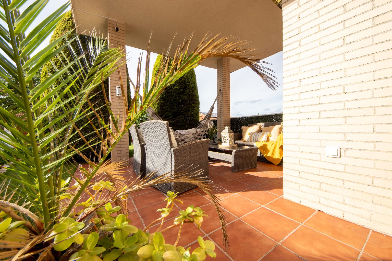Es una casa diferente, pensada con ambición: porche y jardín de entrada que conectan directamente con el salón, espacios exteriores para el ocio, una cocina espectacular, garaje automático y soluciones ecológicas.