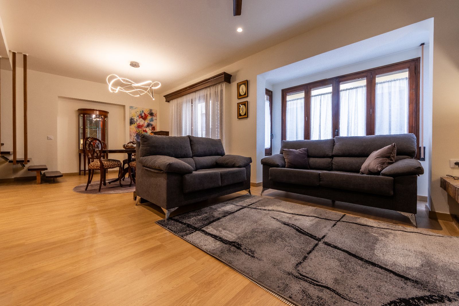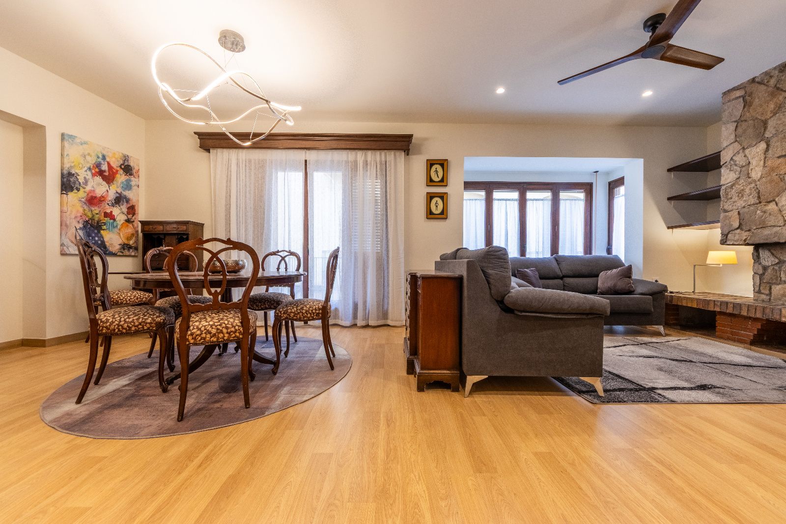El salón-comedor, amplio y acogedor, cuenta con una chimenea que se convierte en el corazón del hogar, ideal para reuniones familiares o momentos de relax con amigos. La luz natural inunda todos los espacios, resaltando los detalles de la carpintería y los acabados de calidad que hacen de este piso un lugar especial.