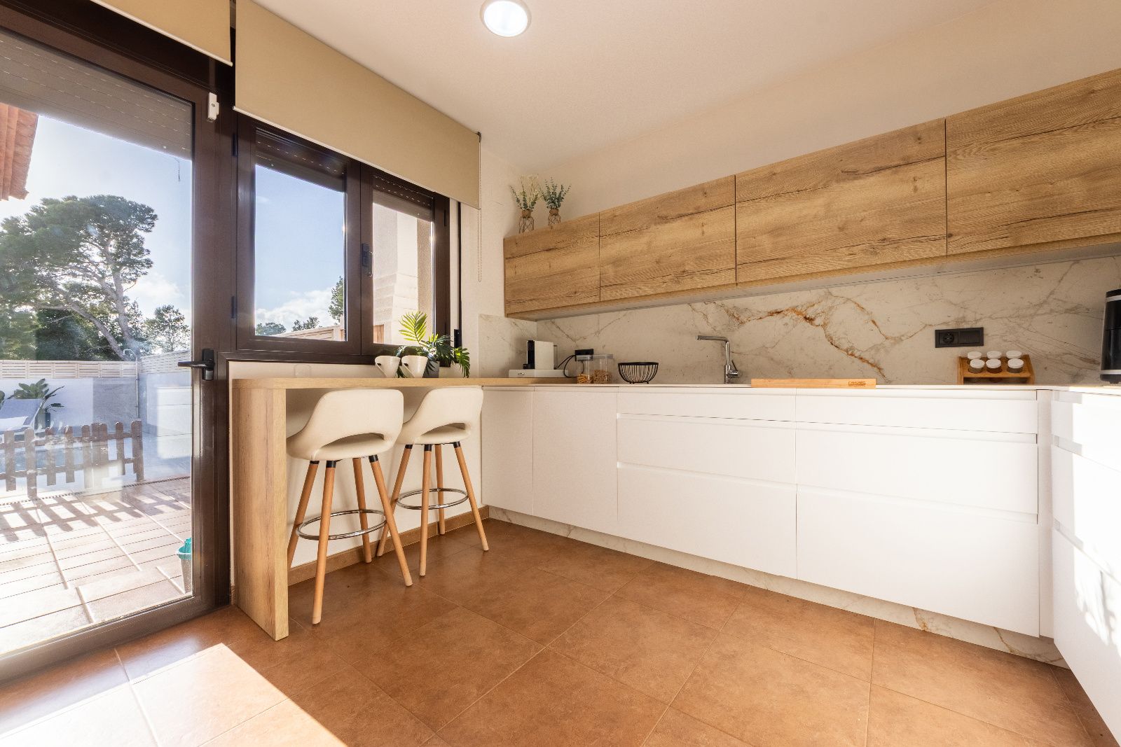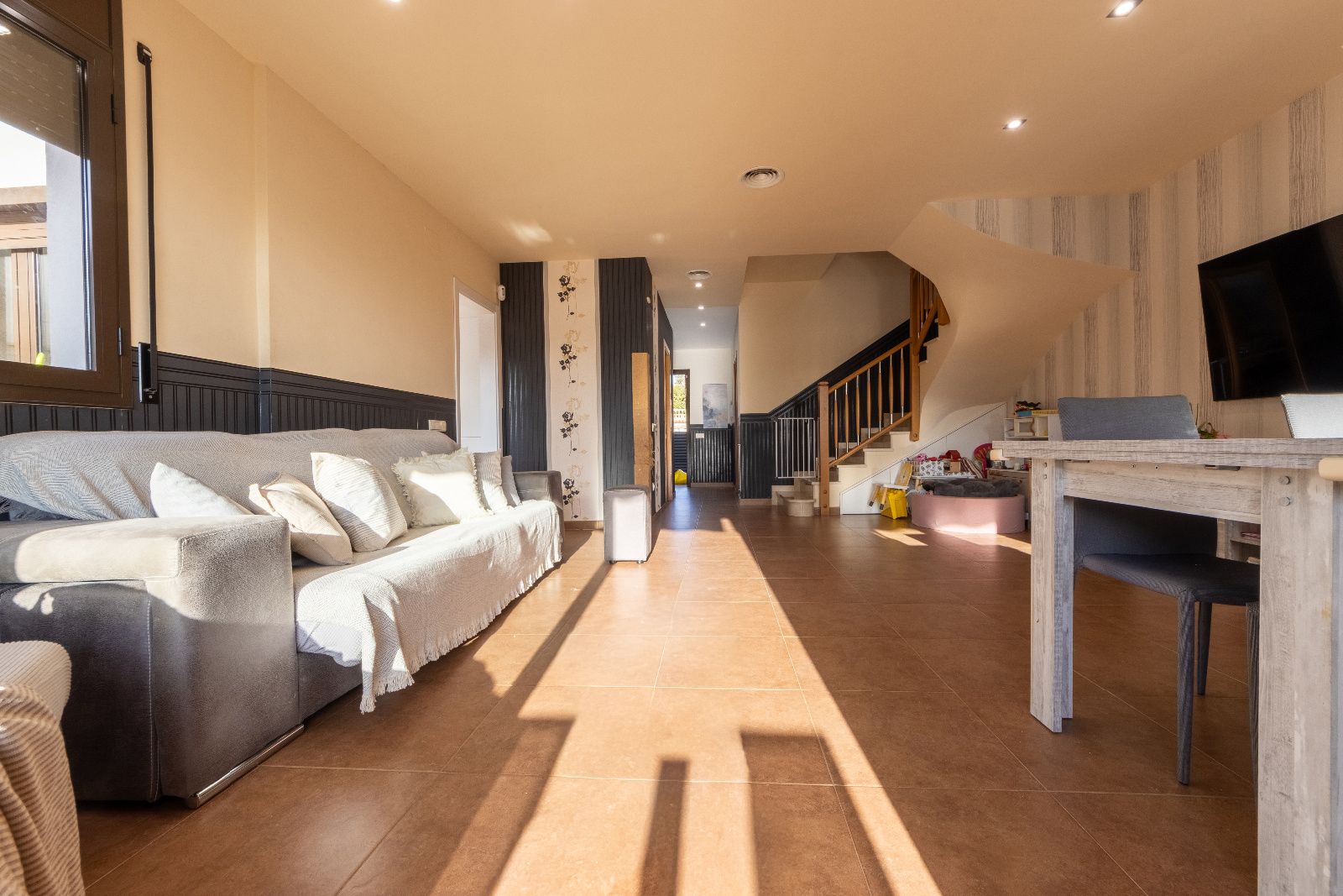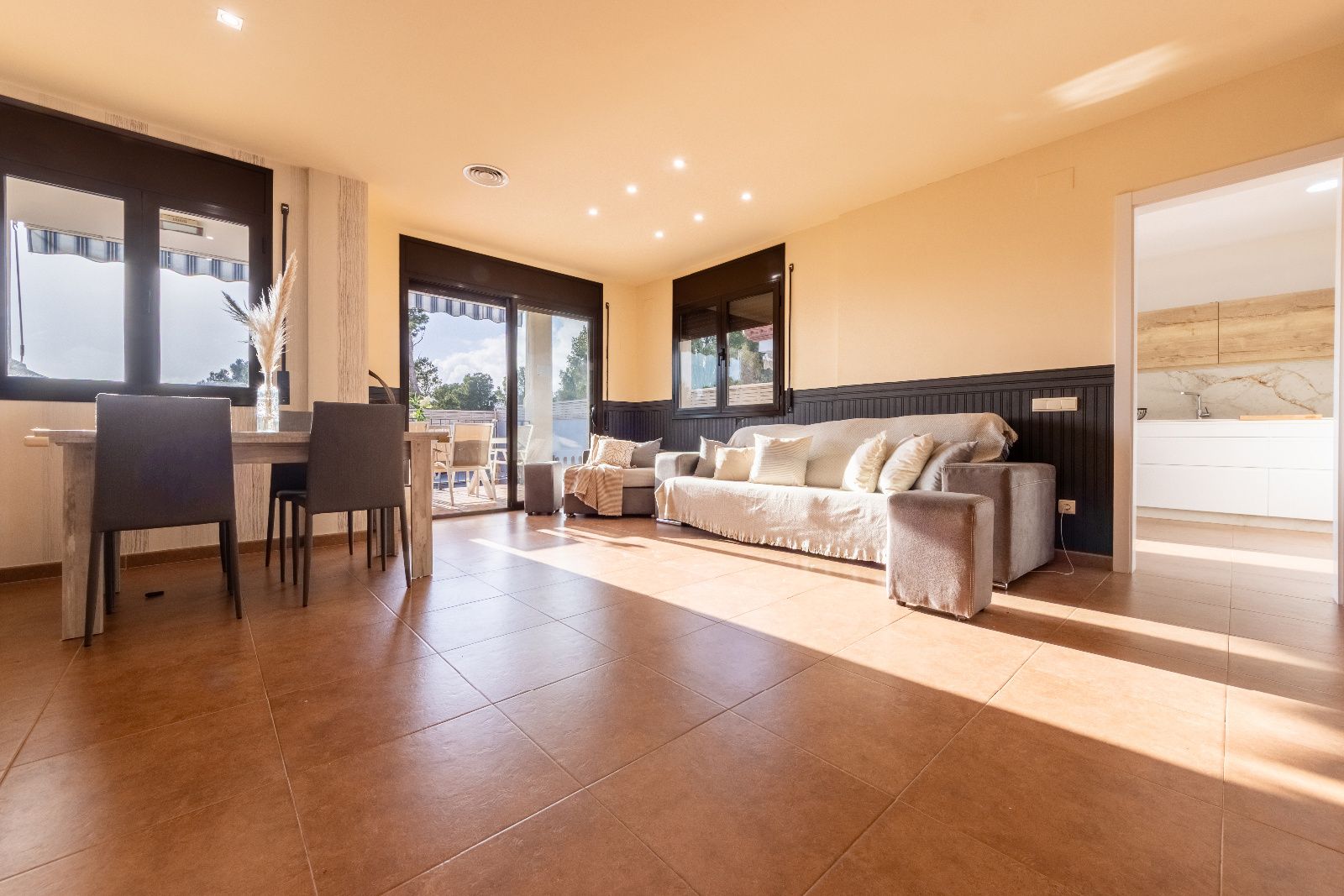 En el centro de la casa, un amplio salón-comedor ilumina los momentos familiares y las reuniones con amigos, mientras que la cocina, renovada en 2024 🍴, se convierte en el epicentro de la vida cotidiana. Desde aquí, solo hay que dar un paso para acceder al porche y a la terraza , que miran hacia la piscina 🏊♂️, un espacio perfecto para jugar, relajarse o disfrutar de una comida al aire libre.