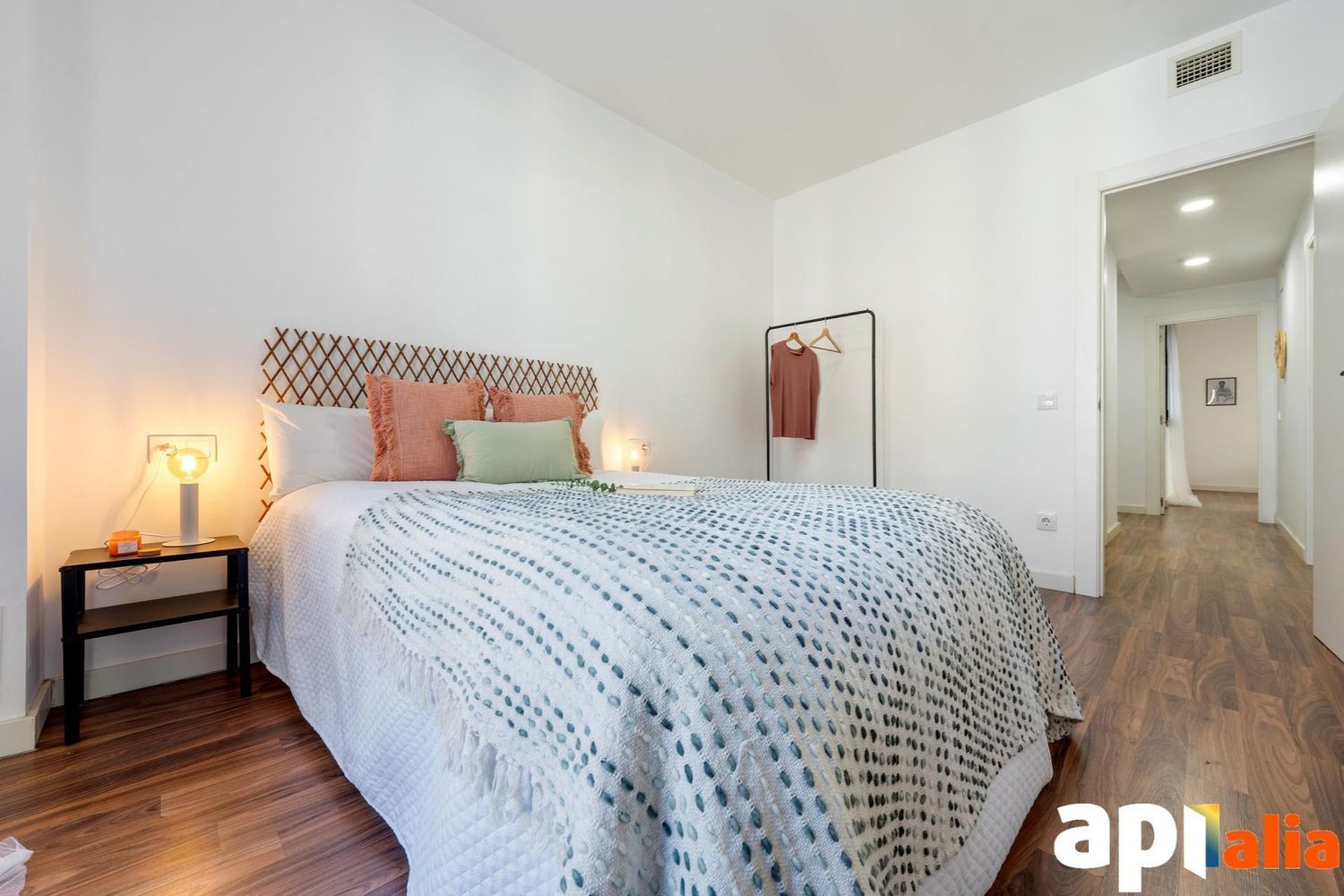 Los materiales refuerzan la sensación de calidad: suelos de parquet puertas lacadas en blanco y carpintería de aluminio con persianas automáticas aportando confort y una estética contemporánea. 🔥